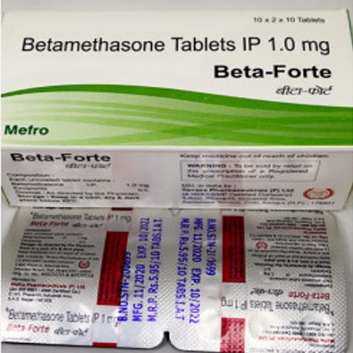 Use For:BETA FORTE Tablet contains Betamethasone 0.10 mg, a potent corticosteroid used to manage a range of inflammatory and allergic conditions by reducing inflammation and controlling symptoms associated with various disorders.Betamethasone works by suppressing the immune system's inflammatory response. It effectively reduces swelling, redness, and discomfort caused by conditions such as arthritis, skin conditions (like eczema and psoriasis), allergic reactions, and certain autoimmune disorders.